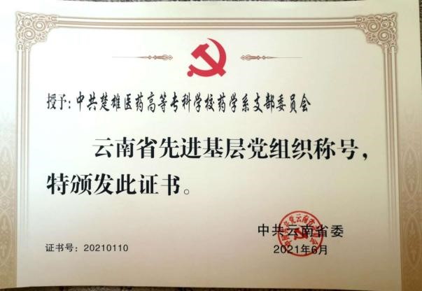 药学系党支部委员会荣获“云南省先进基层党组织”荣誉...