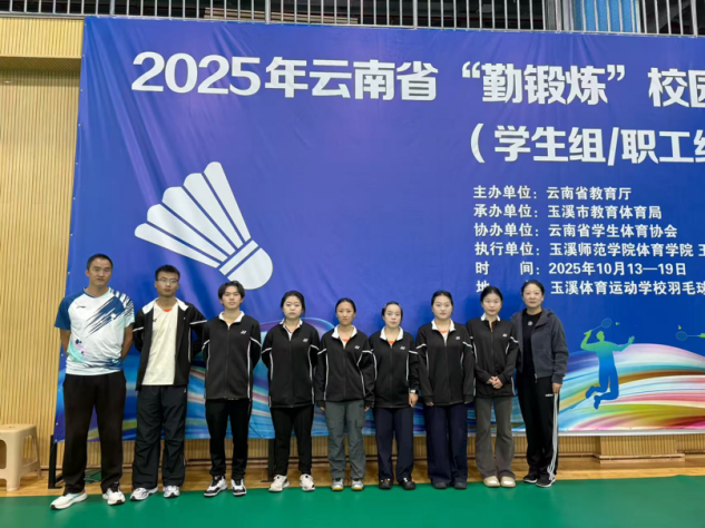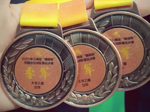 近日,2025年云南省“勤锻炼”校园羽毛球联赛总决赛在云南玉溪体育运动学校圆满收官。beat365羽毛球队在李榕、倪留才两位教练的带领下,由杨正娇、孟洣、张阳、陈子琦、胡志宏、周鑫宬、陈和晓、蒲香伶、陈宏增9名同学组成的参赛队伍,凭借扎实的训练功底与顽强的竞技精神,在全省参赛队伍中脱颖而出,成功斩获男子单打季军、第一女双季军、第二女双第五名三项优异成绩,为校争光!