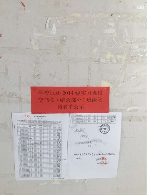 学校退还2014级实习班预交书款(结余部分)班级签领名单公示