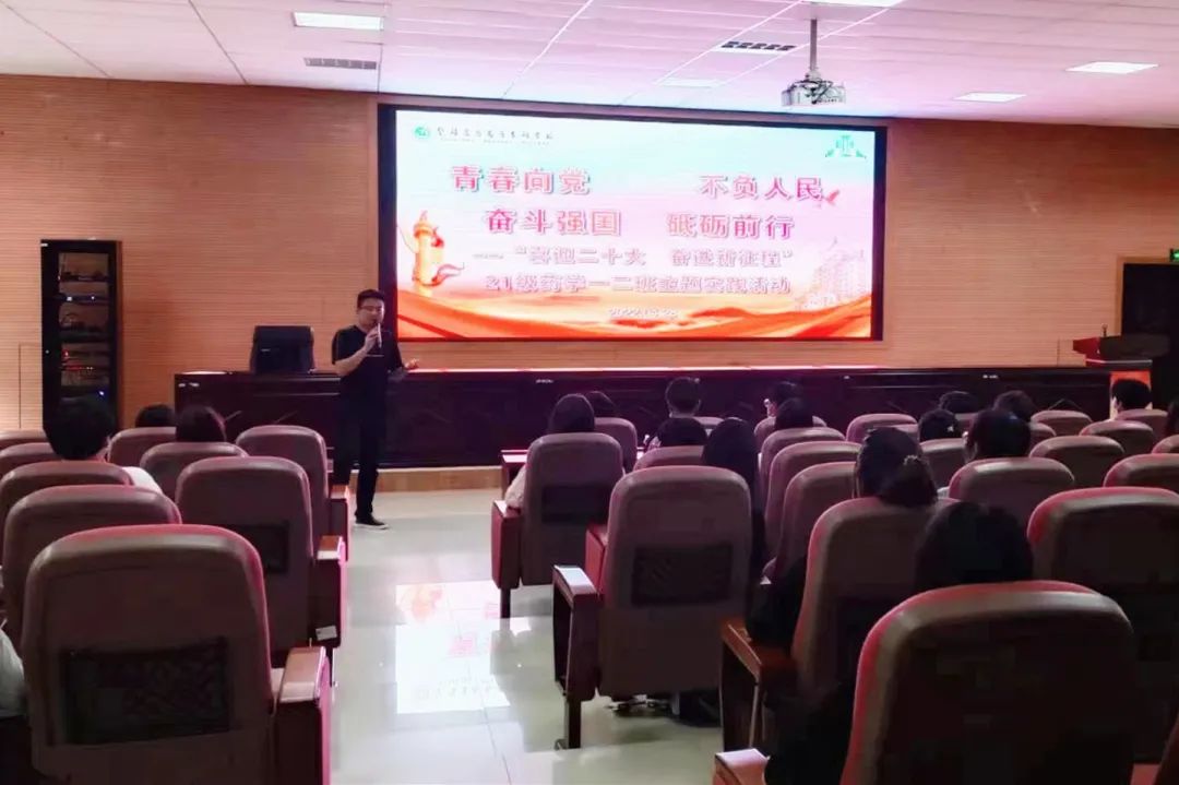 赓续青春百年志,踔厉奋发向未来。2022年是党的二十大召开之年,也是中国共产主义青年团建团100周年,为积极引导学校广大团员青年砥砺奋进、筑梦前行,4月28日,药学系2021级药学一、二班班主任张嘉峻老师组织带领两个班79名同学,在校史馆报告厅开展了“青春向党、不负人民、奋斗强国、砥砺前行”班级主题教育实践活动,依托学校红色教育资源,采用“1+1+1”三线实践模式,突出仪式教育的感召作用,使79名同学在庄严肃穆的仪式中接受“沉浸式”的精神洗礼。